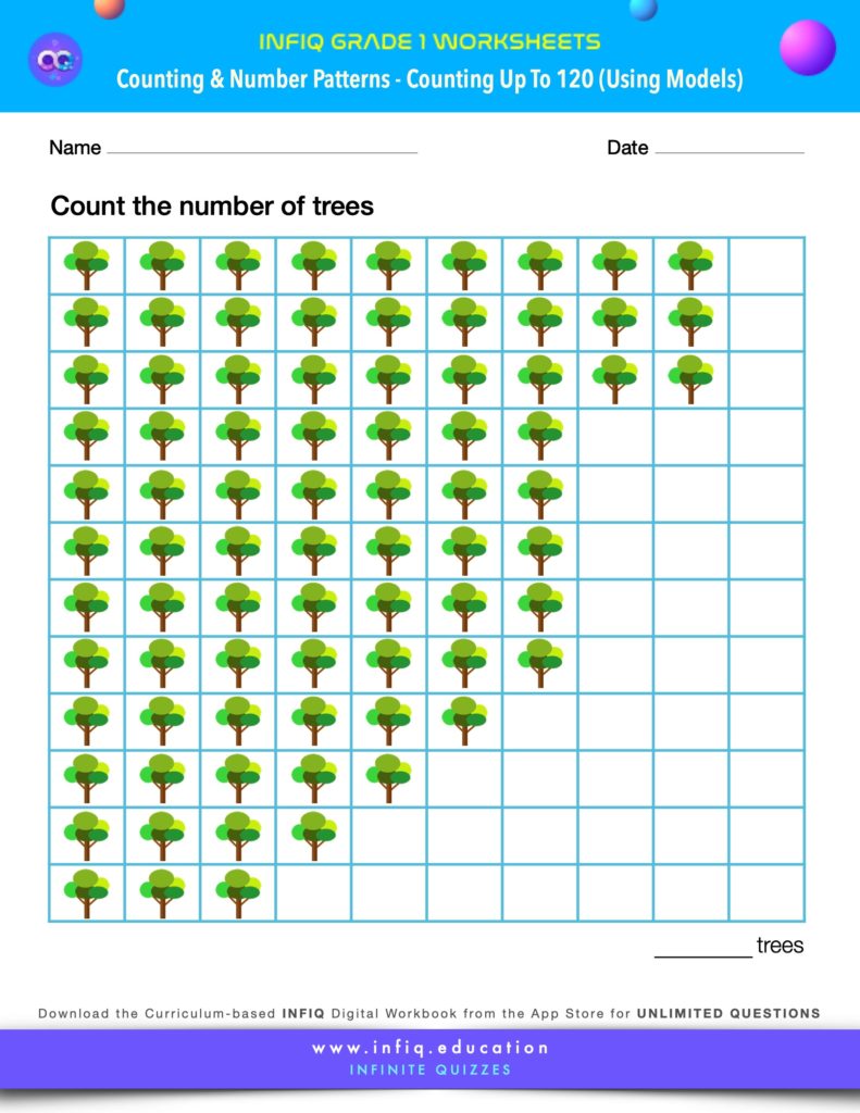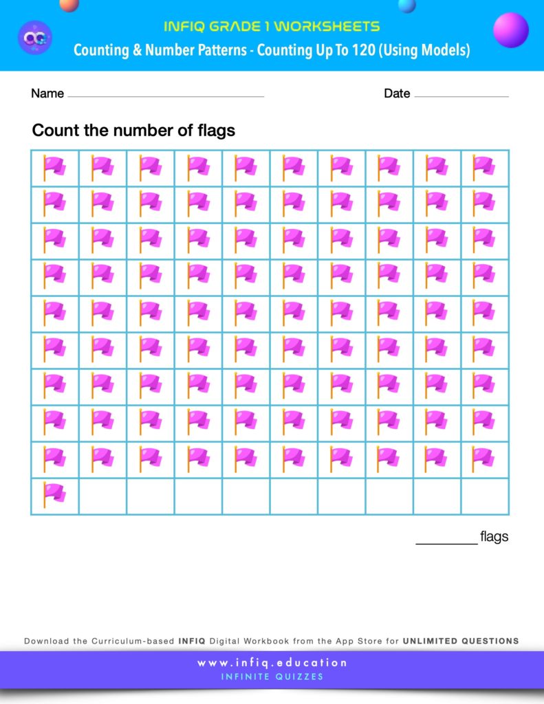 Use this worksheet to practice and understand the concept counting up to 120, using a model.