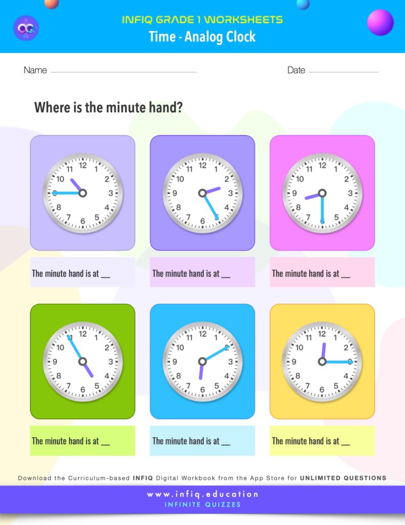 Use this worksheet to practice reading the position of the minute hand in an analog clock.